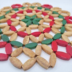 Add a touch of elegance to your kitchen with this eco-friendly bamboo trivet. Handcrafted with red and green accents, it offers both style and functionality.