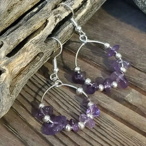 Handcrafted Baroque Amethyst Gemstone Sterling Silver Plated Beads Earrings