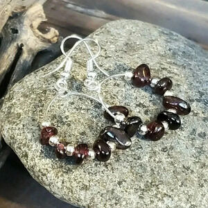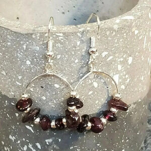 Handcrafted Baroque Garnet Gemstone Sterling Silver Plated Beads Earrings