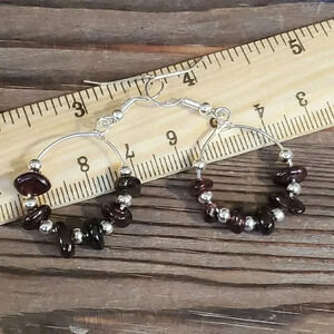 Handcrafted Baroque Garnet Gemstone Sterling Silver Plated Beads Earrings