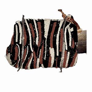 Handcrafted Beaded Convertible Crossbody Clutch Bag Animal Pattern NWT