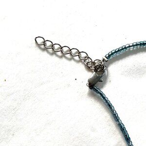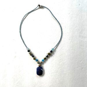 Handcrafted Beaded 18" Necklace With Blue Gemstone Pendant & Adjustable Lobster
