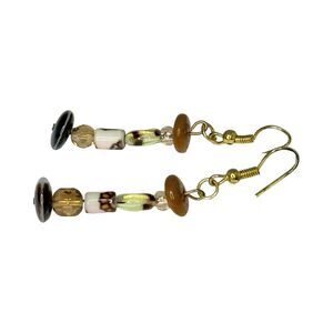Enhance your boho-chic style with these stunning handcrafted drop earrings, featuring a unique mix of brown and tan glass beads. Perfect for casual or dressy occasions, these earrings add a touch of vintage elegance to any outfit.