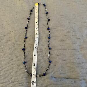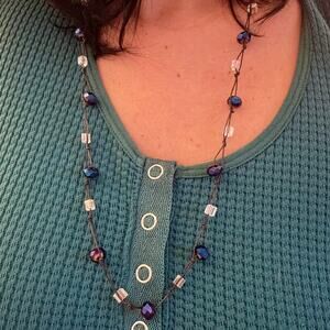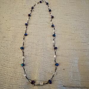 Handcrafted Beaded Necklace – Brown Cord with Iridescent Crystal Beads