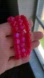 Acrylic beads in bright pink with a gorgeous blue/silver flash. Beads are roughly 10 mm and bracelets are 7in. I can adjust size for you if needed!