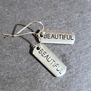 Handcrafted Beautiful Inspirational Word Message Carved Silver Black Earrings