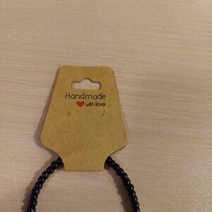 Great color handcrafted bracelet would be great with a casual outfit. Thisnbracelet is handcrafted with seed beads and has a fun mix of blue, yellow, and black beads.