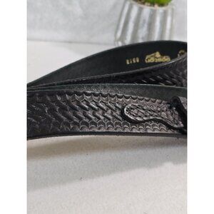 This durable leather belt features intricate embossing and a polished silver buckle, adding a touch of sophistication to any outfit.