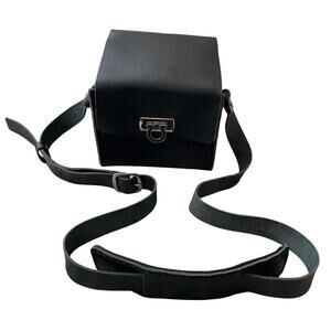 Handcrafted Black Leather Camera Bag | 5.5” Square, Adjustable Strap, Clasp