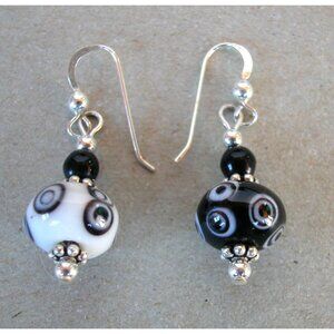 Handcrafted Black & White Artisan Glass Bead Jewelry Set Necklace & Earrings & B