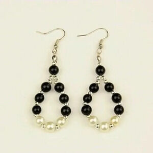 Handcrafted Black White Silver Beads Teardrop Dangle Earrings