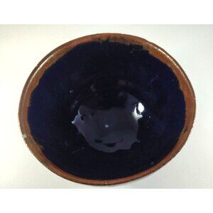 Handcrafted Blue & Brown Artist Signed Ceramic Bowl-Small Chip on Rim