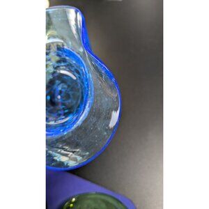 Handcrafted Blue Crackle Art Glass Bowl With Flared Rim Decoration