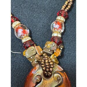 Handcrafted Bohemian Necklace & Earrings Set With Glass Beads Art Glass