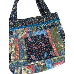 Handcrafted Boho Patchwork Tote Bag With Floral & Paisley Patterns Beaded Trim