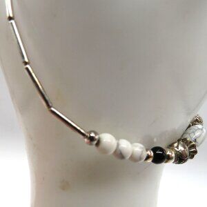 Handcrafted Bracelet Silver Tone Marbled Heart Bead Bracelet Black White