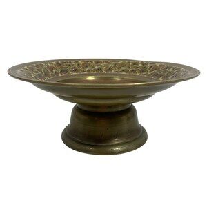 Handcrafted Brass Decorative Pedestal Plate With Etched Intricate Floral Design