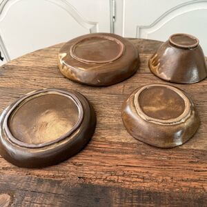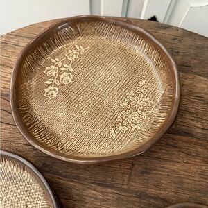 Elegant handmade pottery set. Features beautiful floral designs. Perfect for dining or decor. This would be a beautiful vanity set as well. In perfect condition.