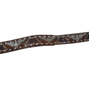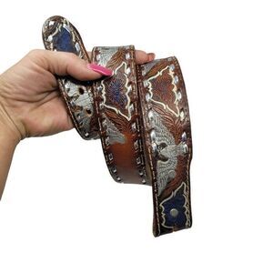 Handcrafted Brown Western Leather Belt Hand Painted Silver Eagle Embossing 32
