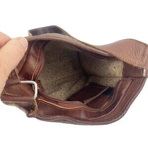 Handcrafted Brown White Hand Tooled Leather Shoulder Bag Vintage