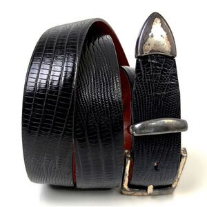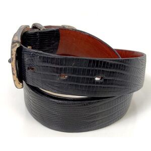 Handcrafted CROCO PRINT BLACK GENUINE LEATHER 1 1/8"Wd DRESS MEN'S BELT 36 (T96