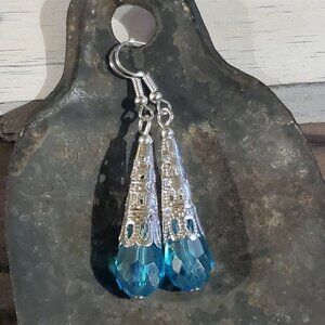 Handcrafted Caged Filigree Faceted Turquoise Blue Crystal Teardrop Earrings