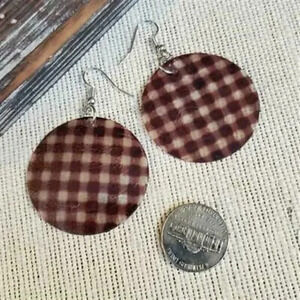 Handcrafted Capiz Shell Earrings White Black Checked Handmade