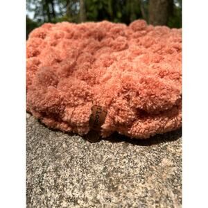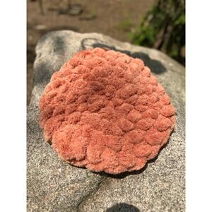 Color is Salmon, this particular yarn has more of a silky feel to it than other yarns and is more flexible than the others. It’s not a negative or positive thing, just a different thing!