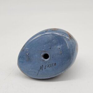 Handcrafted Ceramic Blue Owl Figurine With Floral Design From Mexico