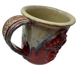 Handcrafted Ceramic Coffee Mug Redware Drip Glaze Rustic Cross Floral Handle