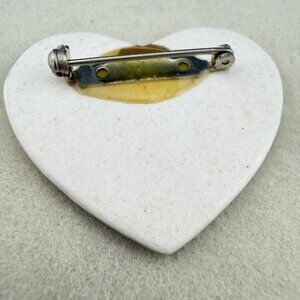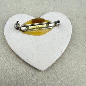Handcrafted Ceramic Heart Brooch Multicolor Enamel Gold-Tone Embellishment Artis
