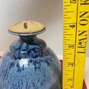 Handcrafted Ceramic Incense Burner With Sandstone Lid - Blue & Green Glaze Finis