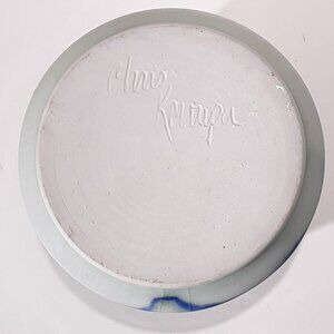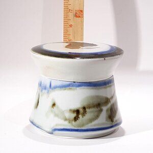 Handcrafted Ceramic Lidded Jar By Chris Krueger With Abstract Green & Blue Brush