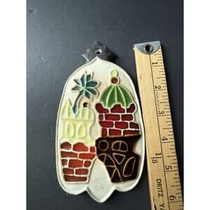 Handcrafted Ceramic Tile Ornament Wall Hanging Boho Rustic Cottagecore Whimsy