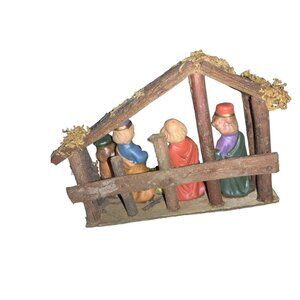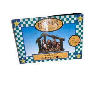 Handcrafted Christmas Collectible Nativity Set With Wooden Stable