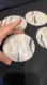Set of four round coasters with a marble pattern. Features cream, black, and gray swirls.