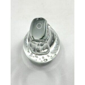 This charming duck figurine made of clear glass features an intricate bubble design within. Its unique handcrafted nature ensures each piece is one-of-a-kind. Perfect for collectors or as a decorative accent in any space.