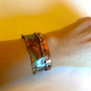 Elevate your style with this handcrafted copper cuff bracelet. Its unique design and rich bronze color make it a standout accessory for any occasion.