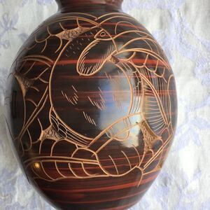 Handcrafted Costa Rican Vase 5 1/2” tall X 4 1/2" wide Carved Monkey, Bird