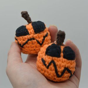 Handcrafted Crochet Catnip Jack O lantern Pumpkins Cat Toys Set of Two