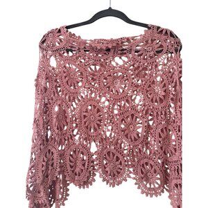 Handcrafted Crochet Floral Lace Shawl Poncho Wrap Pink Unique Design