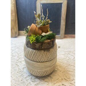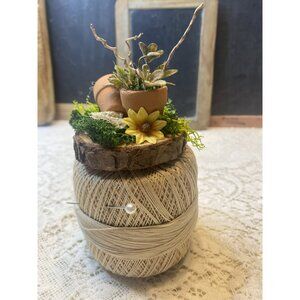 Bring a touch of rustic charm to your space with this handcrafted crochet garden spool. Inspired by vintage designs, this miniature piece is perfect for cottagecore enthusiasts and those who appreciate delicate, handmade decor.