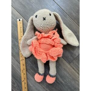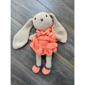 Handcrafted Crochet Knit Bunny Rabbit Doll Peach Handmade Whimsy