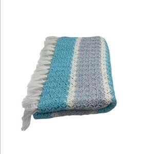Handcrafted Crochet Soft Blanket Throw Baby Fringe Pink Blue Aqua Cream Cottage