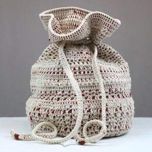 crochet Bohemian hippy festival Faire hand bag gift birthday outdoors present wrapping drawstring knit lined loop fairycore cottagecore trendy popular 2024 short summer vacay vacation trip beach party destination color one of a kind Coachella concerts cosplay