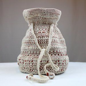 Handcrafted Crocheted Cream & Dark Orange Drawstring Pouch Bag