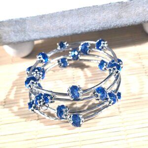 Handcrafted Crystal Wrap Bracelet With Blue Faceted Beads
