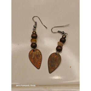 Add a touch of nature to your style with these Handcrafted Dangle Earrings. Featuring natural stone and wooden beads, they come in leaf shape with brown, orange, and gold hues.