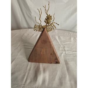 Handcrafted & Decorated Wooden Christmas Tree Shelf Sitter Brown & Gold 8"x5"