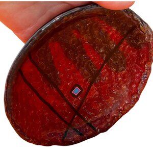 This handcrafted plate showcases a rich dichroic glass design with vibrant red hues and iridescent accents. Its textured finish and unique shape highlight the artistry and craftsmanship involved, making it an elegant decorative item.